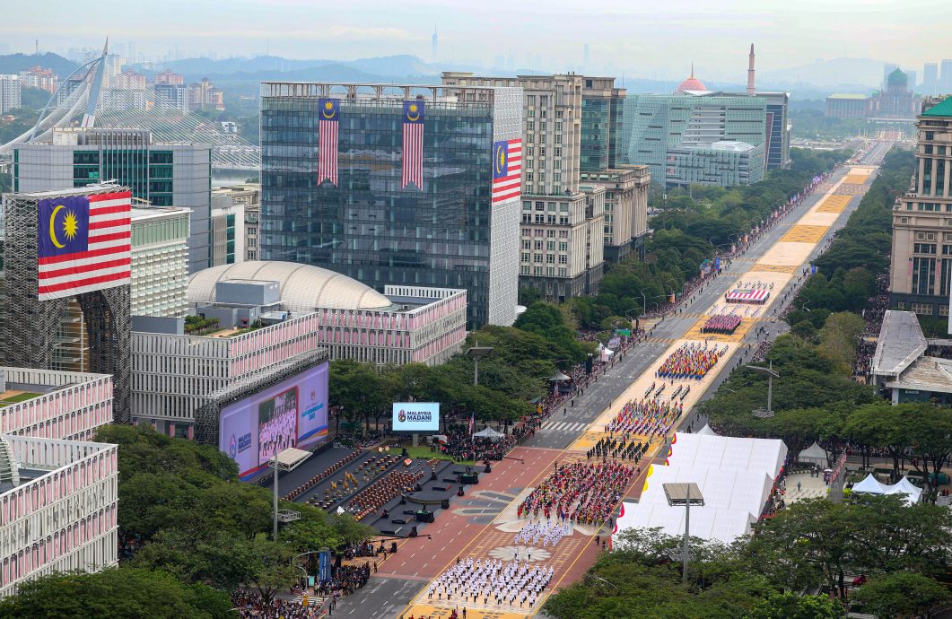 国庆庆典当天,不同团体列队于布城广场进场游行,为国土献上诚挚的祝福。(图:马新社)