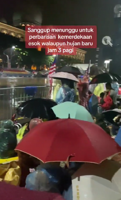 根据Tiktok流传的一则视频,可见逾百名民众在从昨晚半夜起,就已经在布城广场周围打地铺,准备迎接今早的国庆庆典游行。