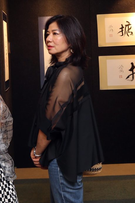 (八打灵再也1日讯)有香港“东方玛丽莲梦露”之称的锺楚红(红姑),专程来马支持蔡澜“草草不工”慈善书法展开幕礼,现年63岁的她风韵犹存,淡出娱乐圈的她全程低调,不愿抢走主角光芒,不过对于媒体的提问,她依然展现亲和力并礼貌做出回应。