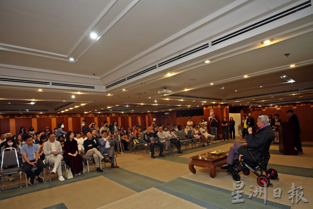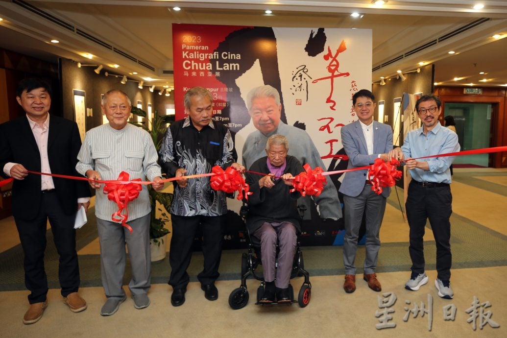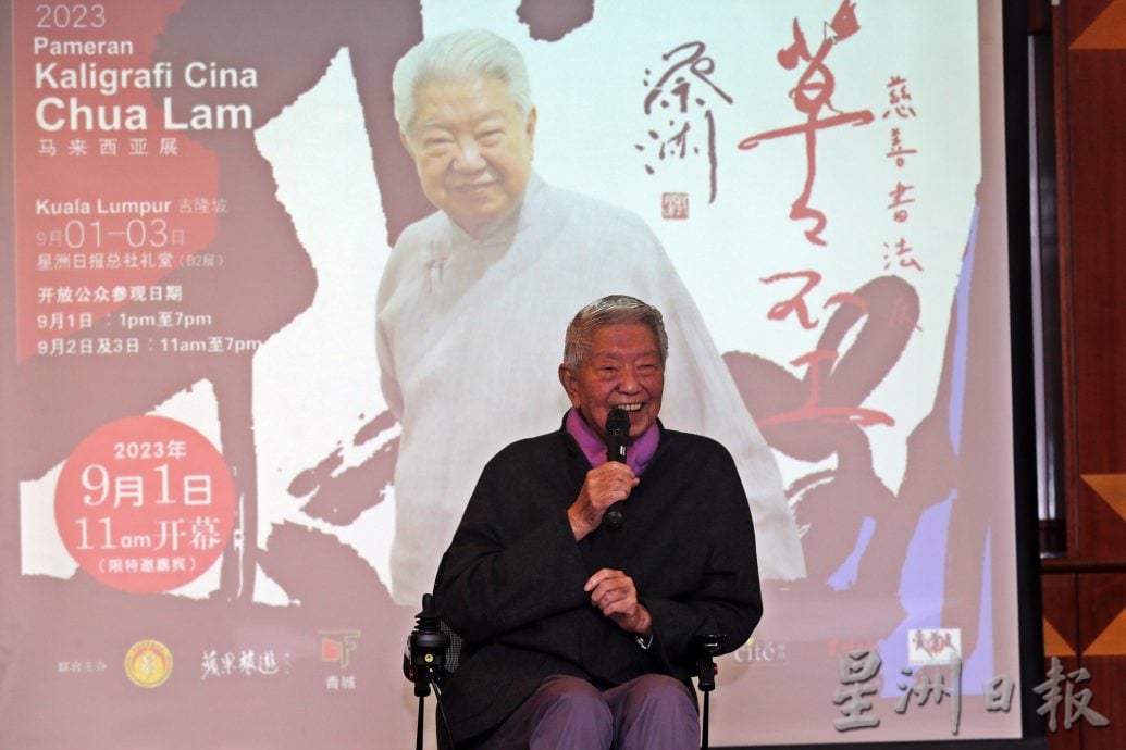 基于蔡澜行动不便,所以他在助理的陪同下,于上午11时许坐轮椅抵达星洲日报总社礼堂,为其“草草不工”慈善书法展进行开幕仪式。