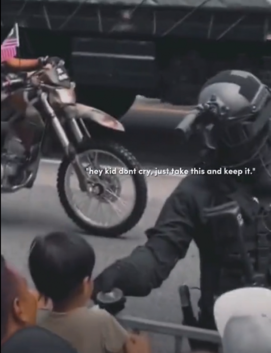 根据Tiktok疯传的一则视频,一名男孩在观赏国庆庆典游行时不知何故哭泣,引发皇家空军特种部队(Pasukan Khas Udara,PASKAU)成员的恻隐之心,下车赠送小男孩一枚徽章,提醒他不要忘了微笑!