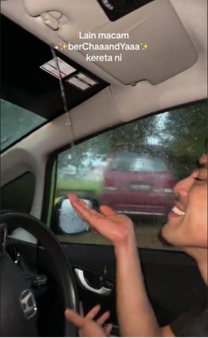 社交媒体近日疯传一段视频,一名男子在雨中驾驶时,因为挡风玻璃处漏水,导致雨水像从水喉管流出般,透过大镜边缘流入车内的司机座位。