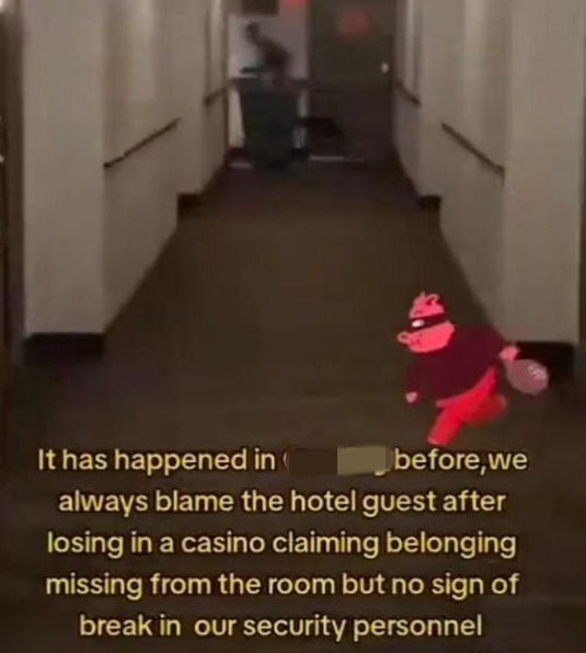 “以前也发生过这种情况,我们总是责怪住客,认为他们在赌博输钱后编造房间物品丢失的故事,因为房间每次都没有任何被闯入的迹象。”