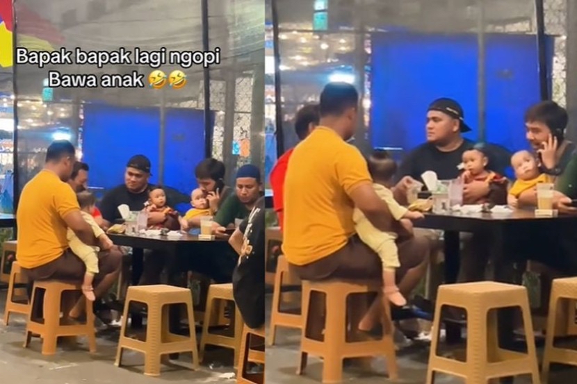 罕见的一群奶爸带娃画面,在社交媒体引起疯传,视频不仅有印尼网民留言,也有大马网民为这一幕逗笑,有者留言“如果找朋友不忘带娃,那妻子们就不会生气了,多迟回家都没关系”。