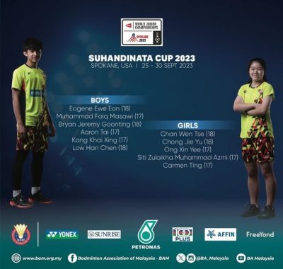 (吉隆坡12日讯)大马羽总今天公布了出征2023年美国斯波坎(9月25日至10月8日)的11人,期待能打破阔别5年的奖牌荒。
