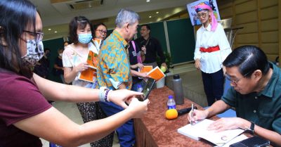 由星洲活力副刊、大马作协、全民阅读运动联办的“三个臭皮匠,一个女靓靓”讲座会,活动当天发生了一段小插曲。本来所有人是要聚在大马华人作协活动中心“一起犯贱”,然而,天有不测风云,突如其来的供电不稳定被迫将这场“贱人大对决”,笑声不断的讲座,转移到星洲日报总社,李系德带着新著《喜有此李》和两个“贱人”兄弟,“山贼”曾子曰和一讲话就笑死人的许友彬,在主持人陈蝶的“三娘”引导下,云端、线下齐齐放送,钓出一段副刊专栏书写,以及粤语在马来西亚兴盛时期的历史与欢乐时光。