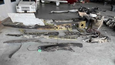 初步报告指出,飞机的大部分被大火烧毁,两个机翼和垂直稳定器结构均已脱离机身。