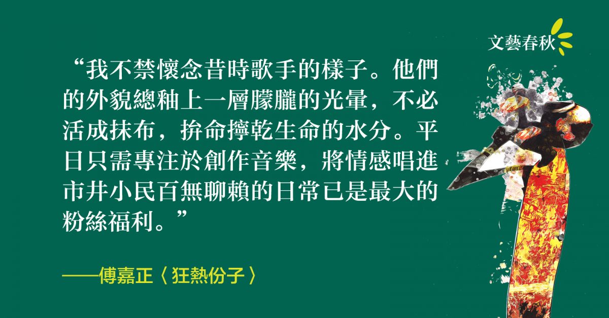 歌手的身分就在某个时刻开始悄然转变。时间急促的步伐带领他们从天际落入凡尘,脱去层层神秘的面纱,摇身变为亲民的偶像。粉丝不再雾中看景般关注偶像,他们可通过五花八门的电视节目、大大小小的演唱会和粉丝见面会,乃至于虚拟的网络世界,捕捉偶像们珍贵的一颦一笑。