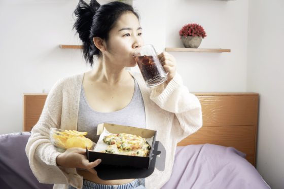 当交感神经活跃时,消化系统会暂停工作以面对压力,如果此时摄取高油脂、高糖分、高蛋白的食物,根本无法消化,最后转变成毒素。