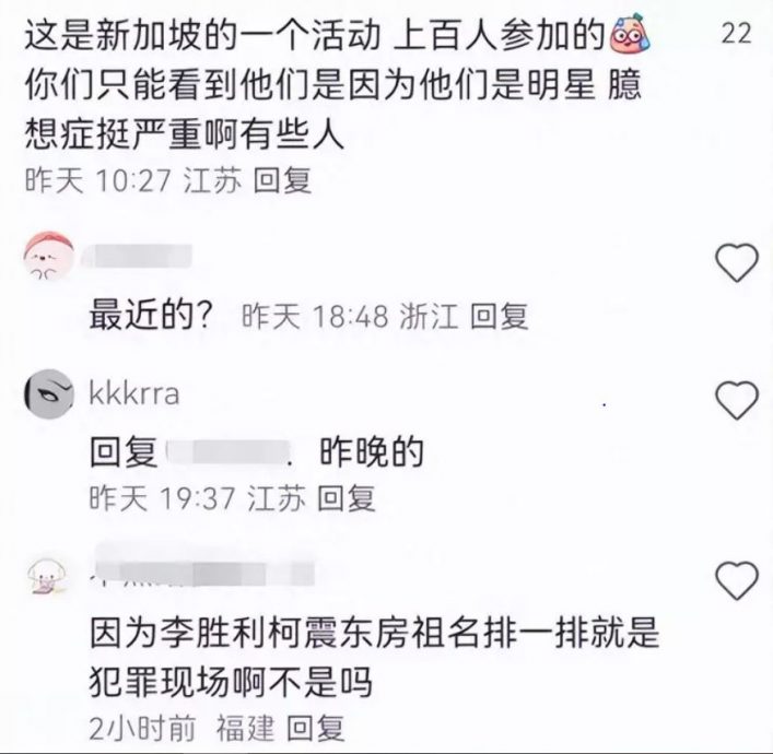 网民前天(17日)在小红书晒出了于新加坡和房祖名、柯震东、陈柏霖、王大陆、李胜利等人的合影,不少中国网民看到房祖名和柯震东再次聚到一起,掀起热议。众所周知,柯震东与房祖名于2014年曾因为吸毒被捉过,两人之后演艺事业也一蹶不振,后来随着时间流逝,柯震东已重新回归银幕前,而呼麻事件也逐渐被人淡忘。就在明年即将满10周年,没想到两人近日同游新加坡,再加上胜利也一起同框,评论区出现许多不同声音,还有人表示“这信息量有些大啊!”