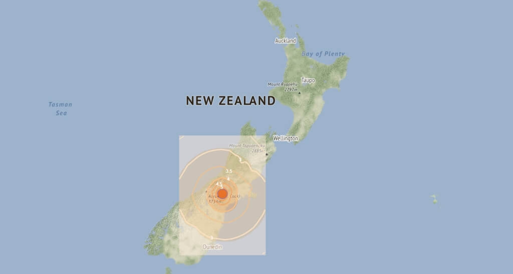 震央在基督城(Christchurch)以西124公里处,震源深度11公里,属浅层地震。