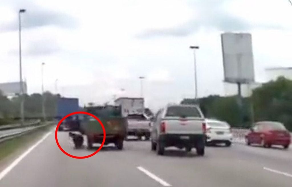 尾随的车子司机有安装行车记录仪,全程拍下事发过程,而当时一名男子突然从罗里掉下,坐落在马路中央,并把尾随车子司机吓着,大喊:“我的天啊!”