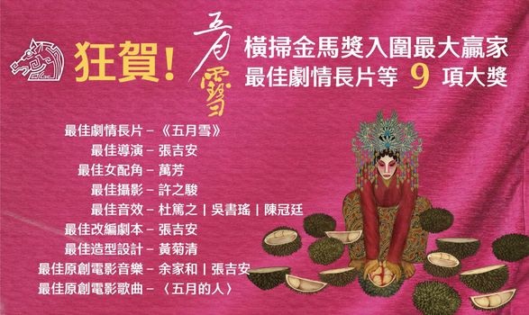 张吉安执导的《五月雪》强势入围9项,包括最佳剧情片、最佳导演、最佳改编剧本、最佳女配角、最佳摄影等等,写下历来大马电影入围最佳成绩。(取自张吉安脸书)