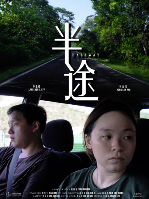 《半途》叙说一对性格不同的兄妹在赶往回乡见外婆的路上,发生了一连串的意外与争执。一个看清自己,却看不开自己;一个忠于自己,却自欺欺人,两人互相抱怨,却又暗藏着对彼此的在乎。