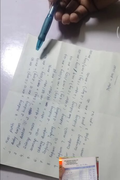 (八打灵再也5日讯)“新山路边店海鲜餐1260令吉”引起网民热议和执法当局关注,其中“4碗白饭40令吉”更被指贵得离谱。对此,路边店老板出面解释,并展示更为清晰的手写账单。