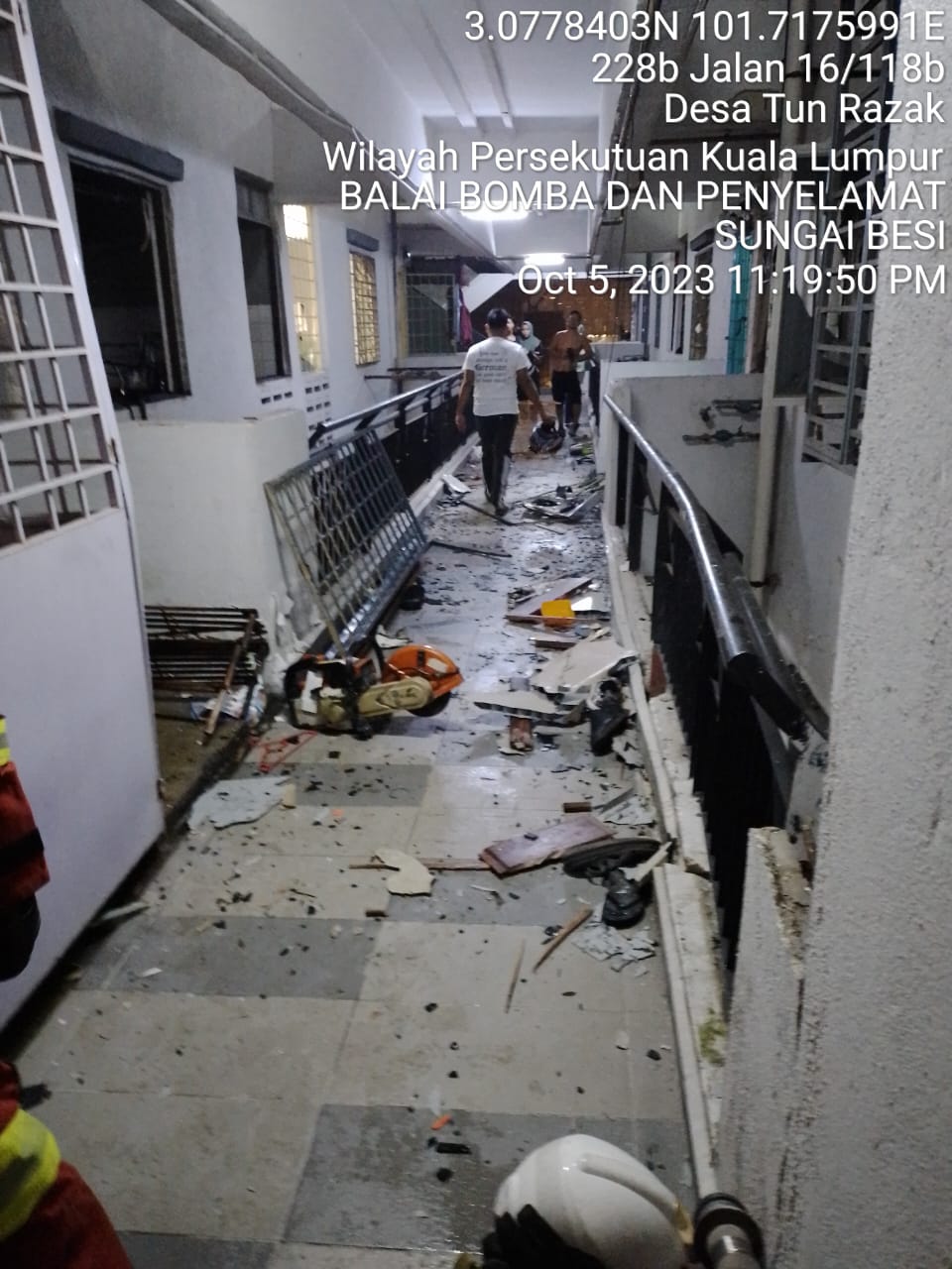 吉隆坡消防及拯救局发言人说,当局接获投报后,从新街场和敦拉萨消拯局调派16名消拯人员、2辆消防车和2辆紧急医药服务消防车到场展开救援行动。