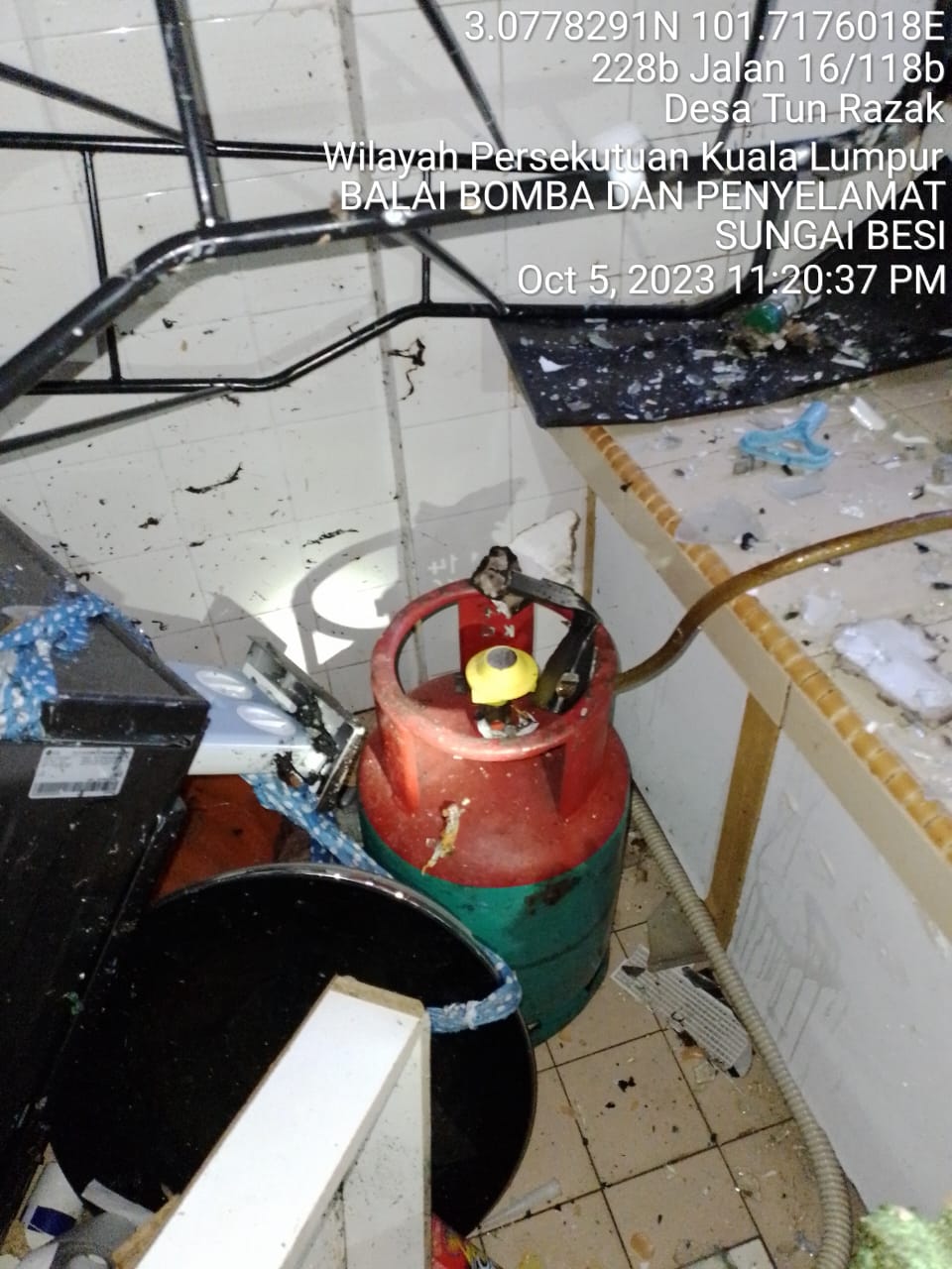据行动指挥官诺拉斯马说,案发单位厨房的液化石油气(LPG) 泄露引发爆炸,殃及附近2间住家,其中一名32岁男子被灼伤30%。