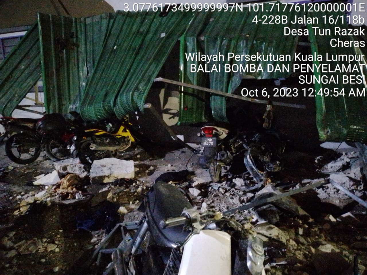 爆炸的威力把有关单位的厨房墙壁炸出大洞。(消拯局提供)