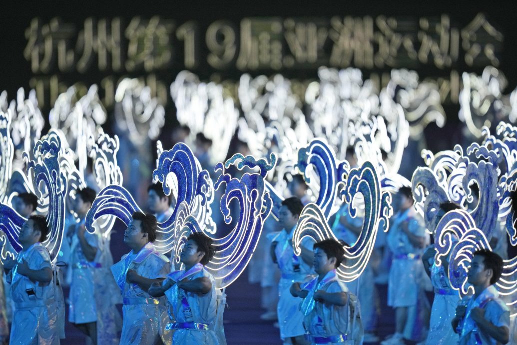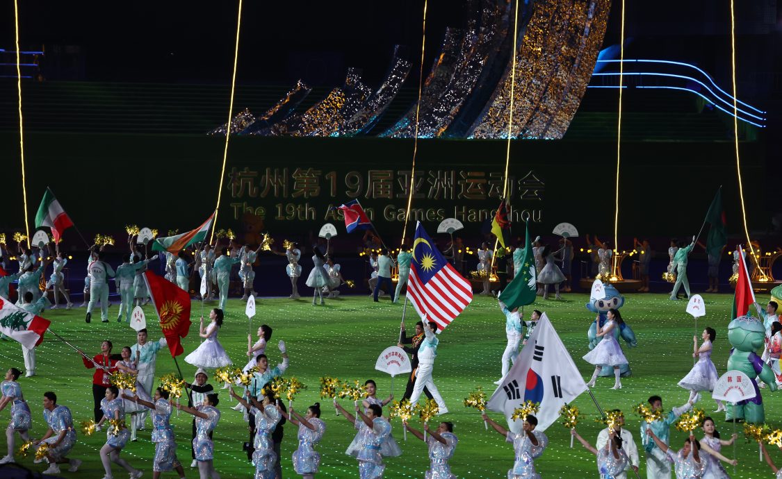 总时长75分钟的闭幕式由《璀璨共此时》、《荷桂共生辉》节目和《亚运聚欢潮》、《精彩瞬间》、《感动瞬间》、《最忆是杭州》短片串起所有亚运记忆,总共包括2194名演员。