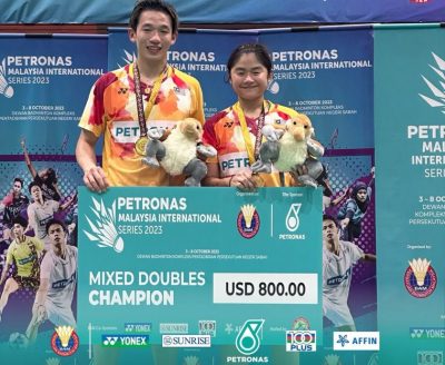 (亚庇9日讯)大马国家羽球后备队球员在亚庇举行的大马羽球国际系列赛收获2冠,10月8日迎来22岁的生日的寿星吕秉坤搭档钟舒韵夺得混双冠军,东道主还在男双包辨冠亚军。
