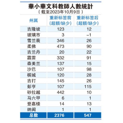 她表示,在经过了教师重新标签工作后,原本教育部系统显示华小华文科教师人数过剩2376名,如今已大幅降低至547人。