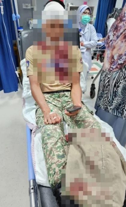(双溪大年12日讯)军人砍军人!一名陆军士兵不知何故,竟然以巴冷刀从后砍向同僚的后颈,导致对方皮开肉绽,紧急送院治疗。