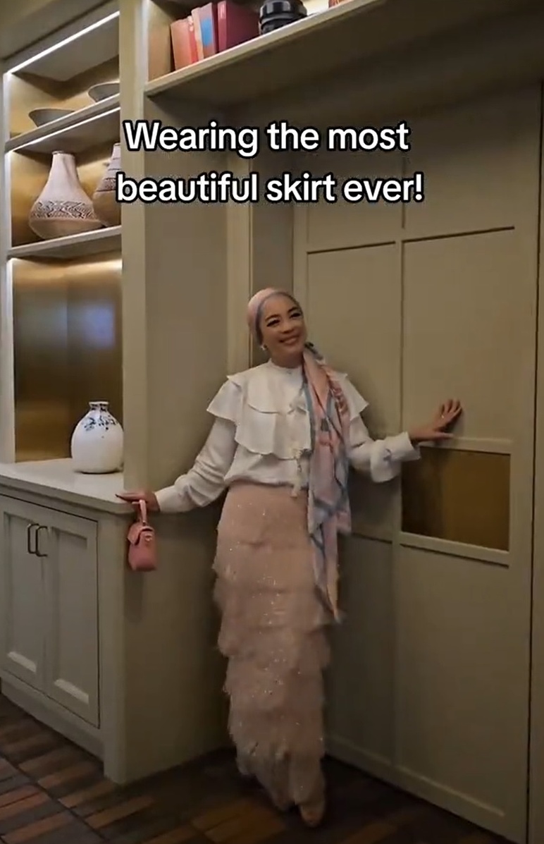 根据薇薇“vivyyusof_”发布的TikTok视频,她展示自己身穿一件名贵的粉色裙子出席活动,并声称这是她穿过最漂亮的裙子。