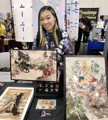 今年的艺术家画廊也有不少华裔画家的和中华元素。华裔女画家张宝云(Cryssy Cheung)将美漫和游戏角色用仿照中国古典绘画的形式呈现,参展作品《蝙蝠侠与罗宾》、《塞尔达传说》别具一格。她形容,自己是铁杆游戏迷,从小时候就热爱绘画。为了创作这些独特的作品,花了很多心力和时间来研究各朝代的服饰器物文化与风格,希望尽自己所能与古代中国的历史风貌相一致。