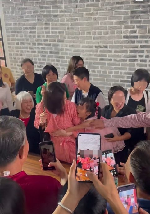 阿佘魅力大爆發,连小朋友都抱紧她不肯让她离开。(取自网络)