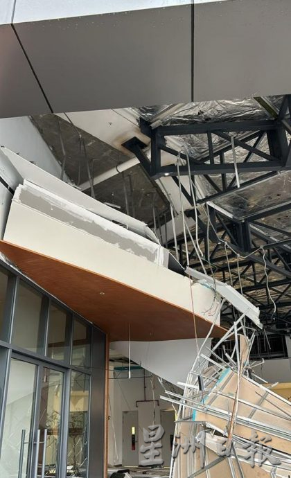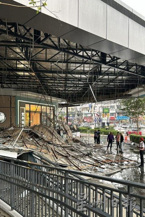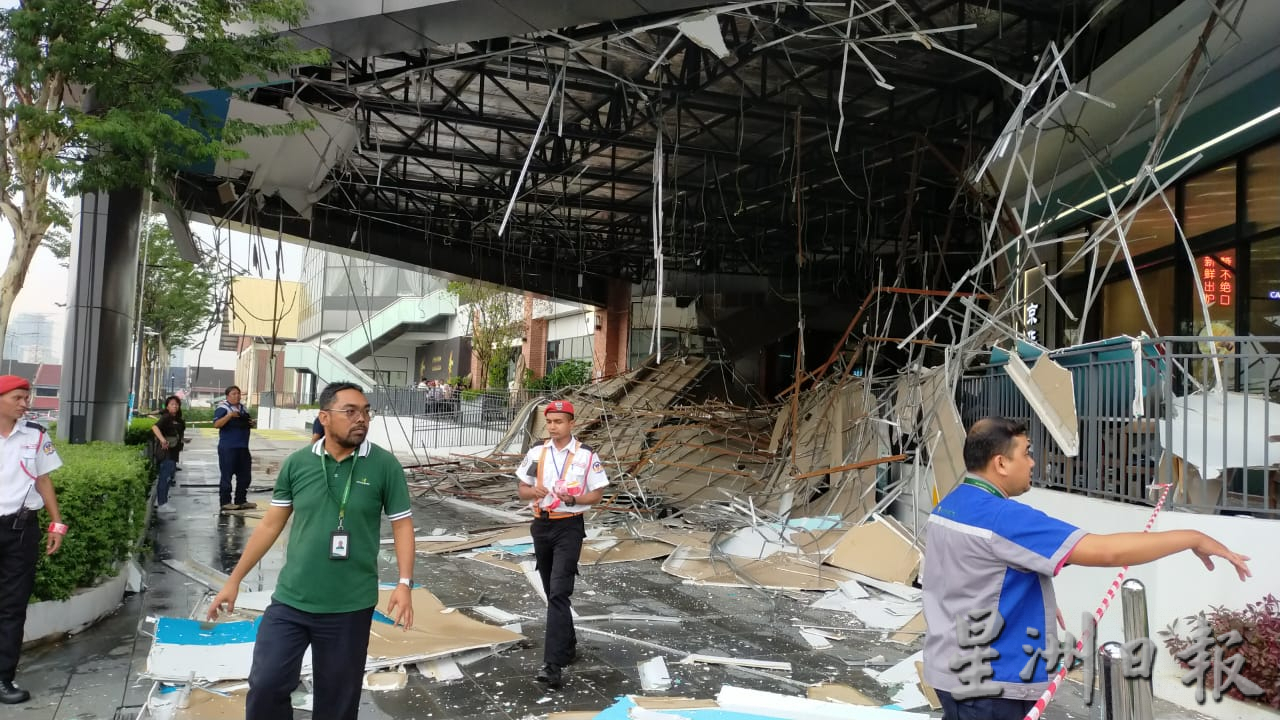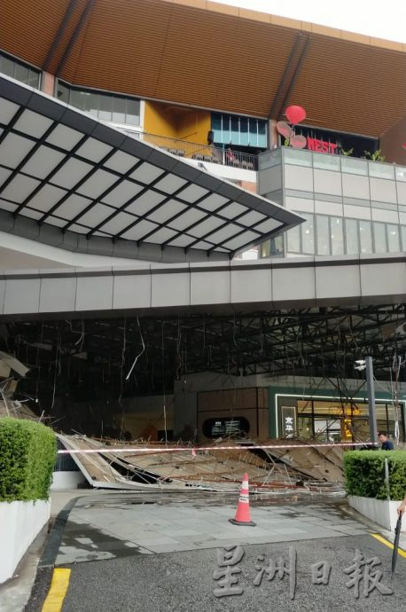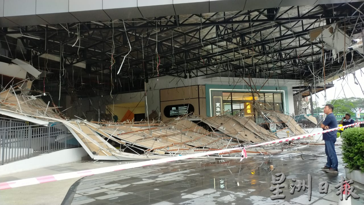 Megah Rise购物广场脸书于今午3时32分发文指出,该广场入口处的天花板,因遭狂风暴雨侵袭而于下午约3时坍塌,造成3人受轻伤。