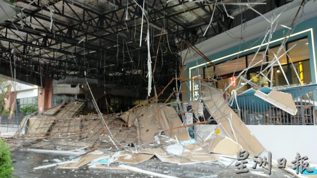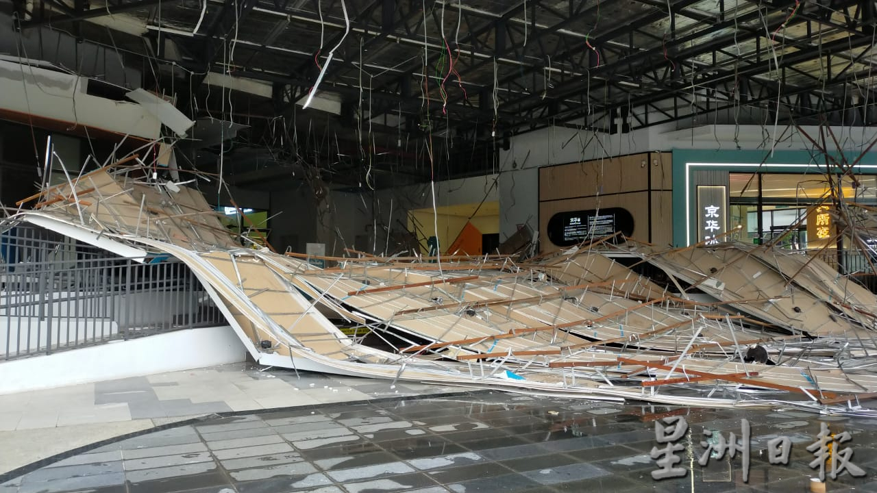 (八打灵再也28日讯)灵市Megah Rise购物广场午后遭狂风暴雨吹袭,整片天花板塌下来!
