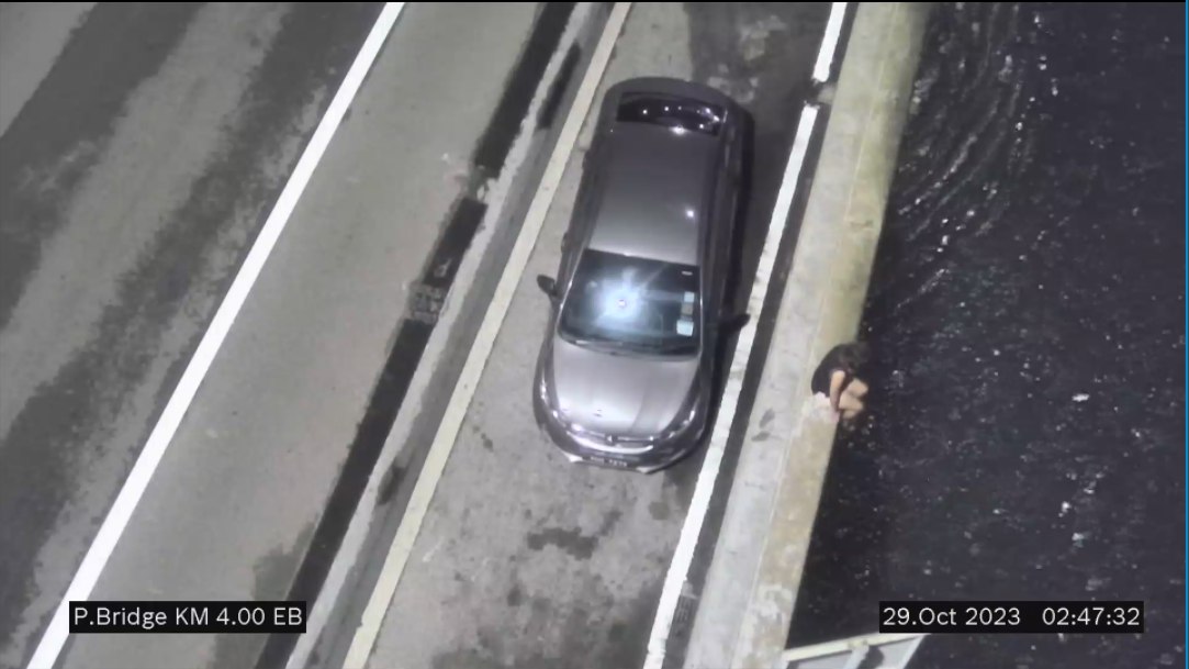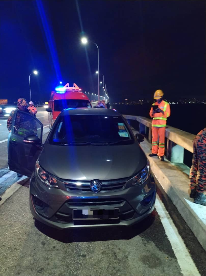 隔日凌晨4时许,一名26岁男子在槟城大桥往北海方向的路段企图跳桥自杀,幸好被到场的消拯员说服,打消跳海念头。