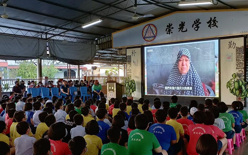 (威南29日讯)正当一些宗教学校力挺巴勒斯坦的激进活动引起广泛非议之际,也有华小已悄然开始响应教育部的“巴勒斯坦团结周”,主调是播放相关战争影片,宣扬和平和人道主义。