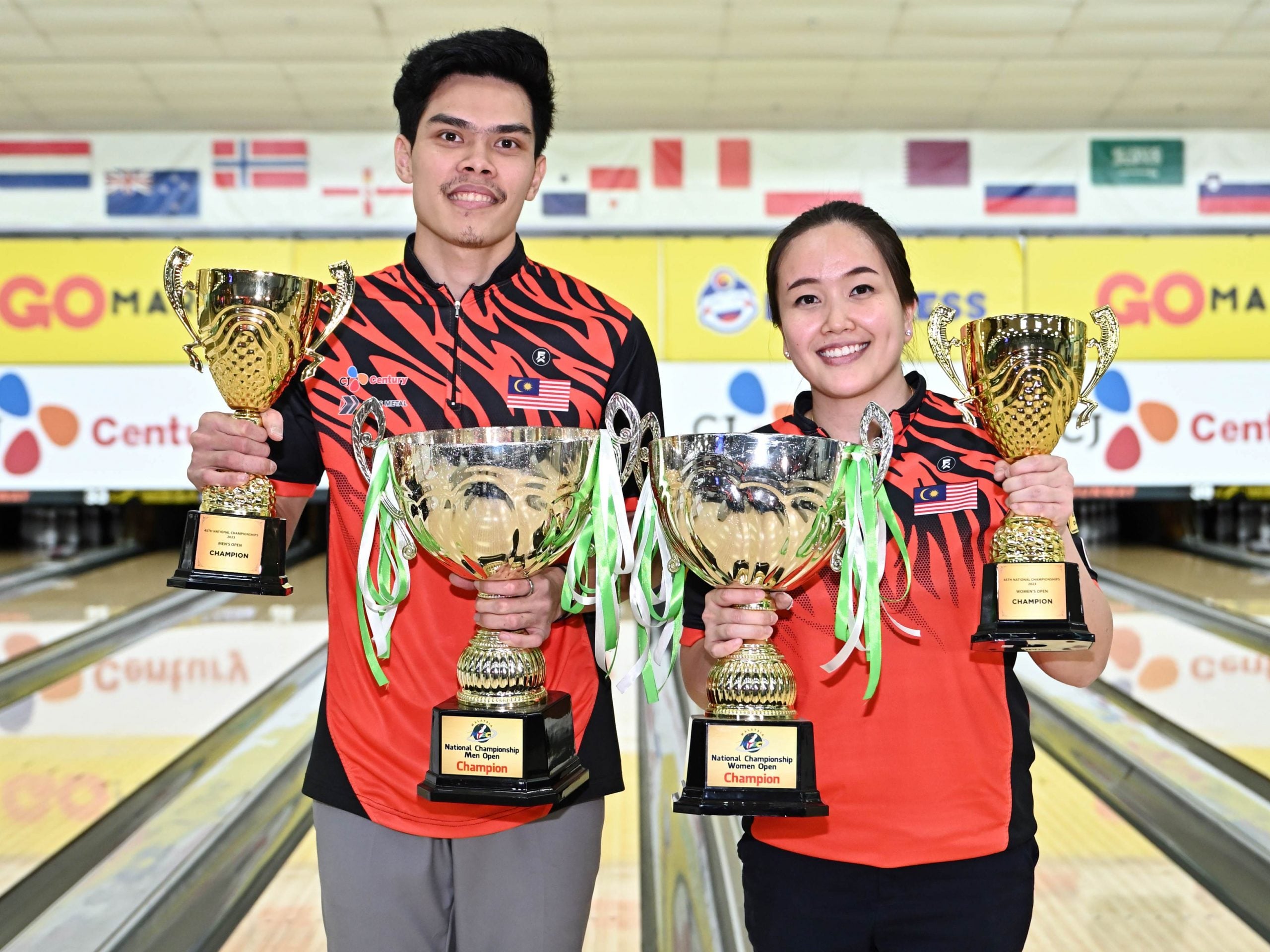 沙魯茲和冼麗瑩奪得2023年全國保齡球錦標賽男女組冠軍。(大馬保齡球總會照片)
