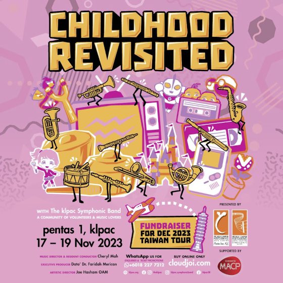 吉隆坡表演艺术中心管乐团(The klpac Symphonic Band)将在2023年11月17日至19 日呈献3场《重温童年》(Childhood Revisited)演奏会。适逢11月20日儿童节,《重温童年》演奏会希望让音乐作为桥梁,与听众一起重温儿时及青年的歌曲。