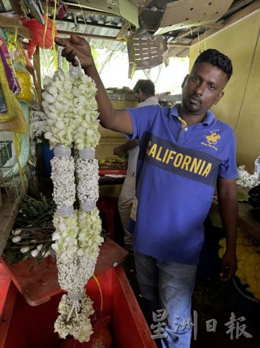 “你可以买花瓣来洗澡,加上一颗酸柑。”隔壁摊位的普斯帕,向我们说明。她表示,每逢大宝森节、屠妖节等节庆,大批民众都会光顾花环店,也是他们最忙碌的时候。