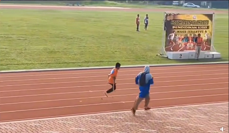 在该48秒的视频中,可见开始有5名学生竞跑,莫哈末阿基尔是唯一使用拐杖的学生,尽管与其他参与者一开始便拉开了距离,他仍奋力追赶。