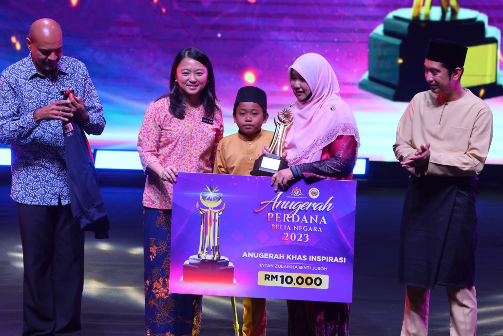 英丹祖来卡在赛道外陪跑和打气的视频被上传至社交媒体后,感动了无数网民。昨晚,她获颁国家青年荣誉奖(APBN)特别励志奖,这一次,是由莫哈末阿基尔伴着她,站上了领奖舞台。