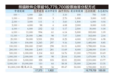 (吉隆坡17日讯)零售管理系统开发商──熊猫软件生态系统(Panda Eco System Berhad)配合首次公开售股(IPO)发售的新股,获得153.47倍超额认购。