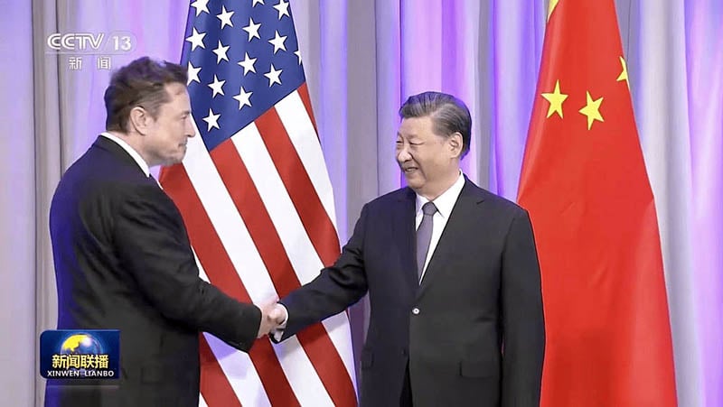 马斯克其后亦在他旗下的社交媒体X平台,发布了他当晚与习近平握手的新闻截图,并附文说:“愿所有人都能繁荣昌盛!”(May there be prosperity for all)。