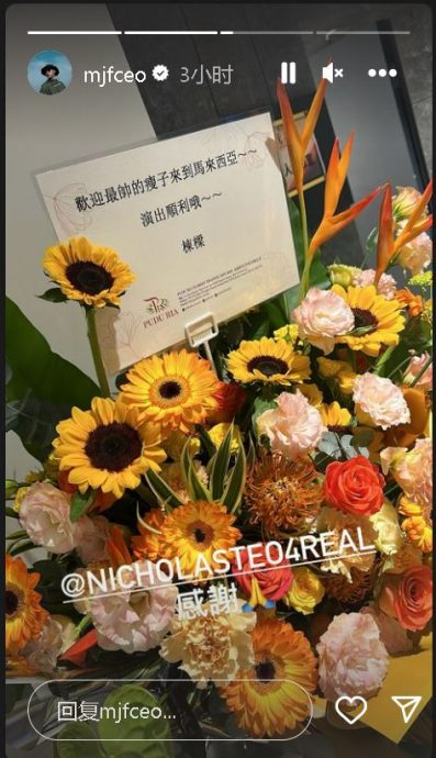 36岁瘦子昨晚在Zepp KL举行《无人机2023 Live House巡回演唱会-马来西亚站》,他在IG限动PO出下午彩排的画面,同时也PO出张栋樑送上的花牌,贺卡写着“演出顺利哦”,瘦子tag张栋樑回复“感谢”,足见两人参加《披荆3》后建立好交情。
