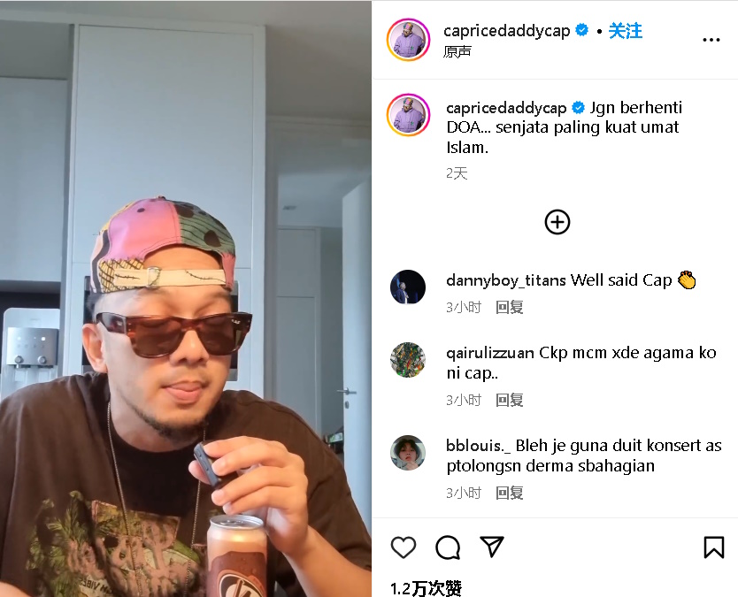 对此,Caprice近日在个人Instagram发布视频说,他被问到Coldplay演唱会跟本地马来女歌手艾娜阿都(Aina Abdul)演唱会有何分别,为何没有人要求取消后者的演唱会,甚至还有人问他,该乐队跟本地歌手阿里夫阿兹(Aliff Aziz)在《Gegar Vaganza》节目中的表演有何不同?