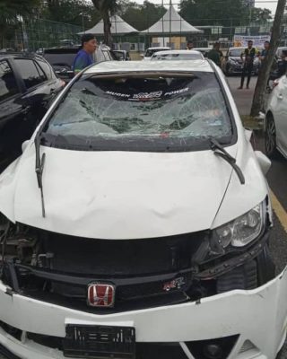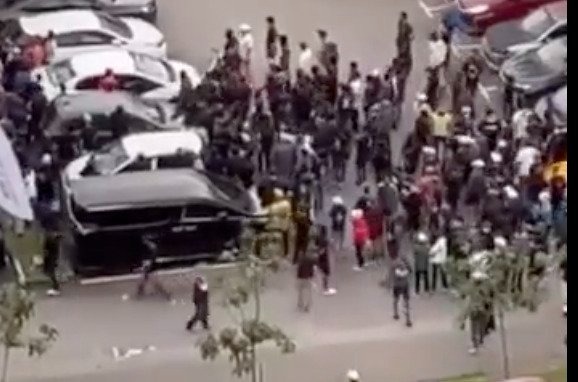 一辆本田轿车的挡风镜,被愤怒的球迷砸碎。(Mynewshub视频截图)