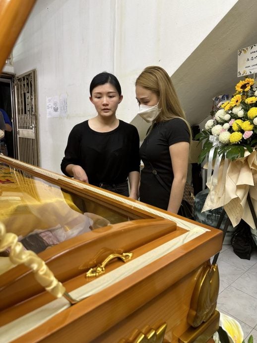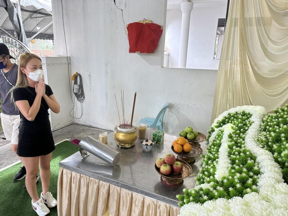 王雪晶是今日第一位上门吊唁的艺人,早上11时许抵达后就上前慰问庄群施的父母,之后走到灵柩瞻仰群施遗容,期间多次拭泪。