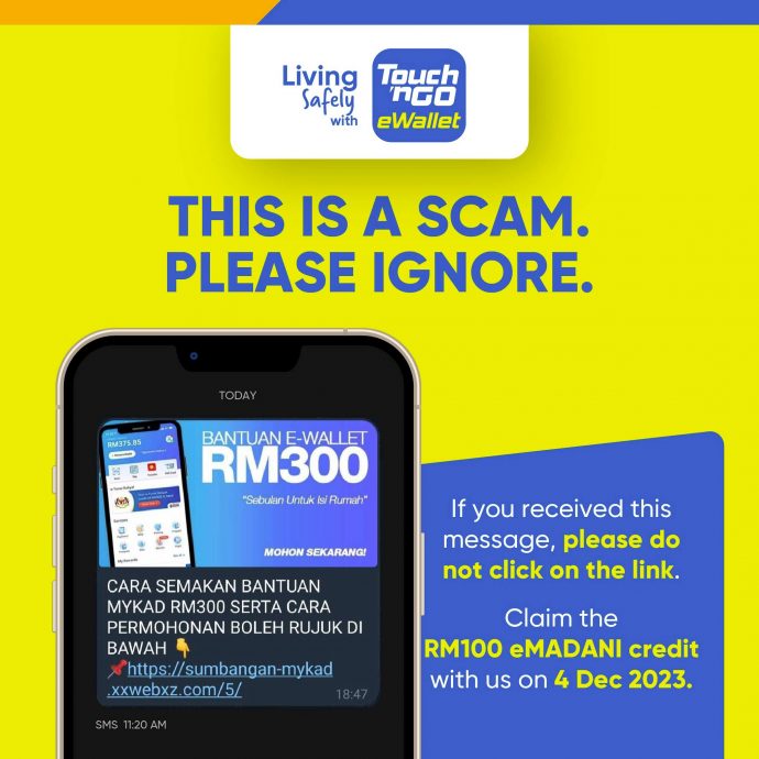 (八打灵再也2日讯)一触即通电子钱包提醒用户,该公司不会发送任何含有链接的信息给用户。