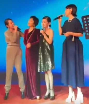 “歌坛东方不败”张清芳虽未留下背板照,但她在现场为新人献声,演唱台语歌曲《家后》祝褔,之后锺镇涛也上台献唱,现场秒变演唱会。据悉,张艾嘉与爱徒刘若英、李心洁还联合张清芳一起合唱《爱的代价》,掀起婚宴的最高潮。