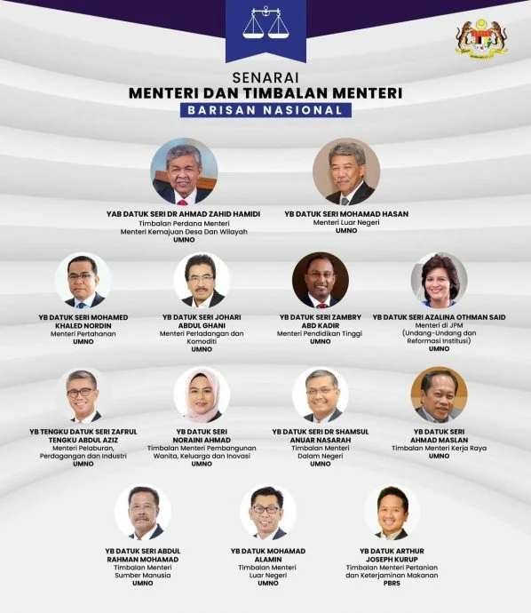 另外两个巫统新部长和副部长人选,副主席佐哈利,和妇女组主席诺莱妮,则是党职伸延到政职的表象。佐哈利不是扎希的亲信,但是赢了巫统副主席的位子,也就获得一个部长职位,但原产业部权重不算太高,算是给巫统党内一个交代。诺莱妮曾任高教部长,这一次只获得副部长职位,应该是因为蛋糕无法再做大,因此只能让她屈居副部长。总括而言,巫统在内阁的代表,还是以党内权力排序为基础。