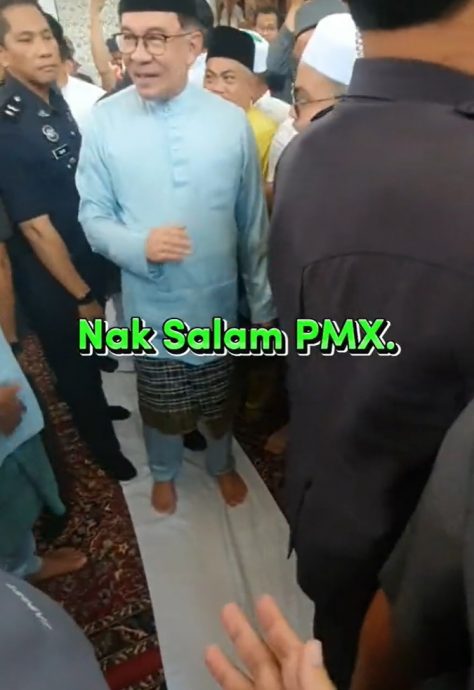 (吉隆坡16日讯)一名沙巴男子为了要与首相拿督斯里安华握手,不惜千里跋涉到吉隆坡联邦直辖区清真寺参与祈祷,最终成功与首相安华握手,赢得全网恭贺!