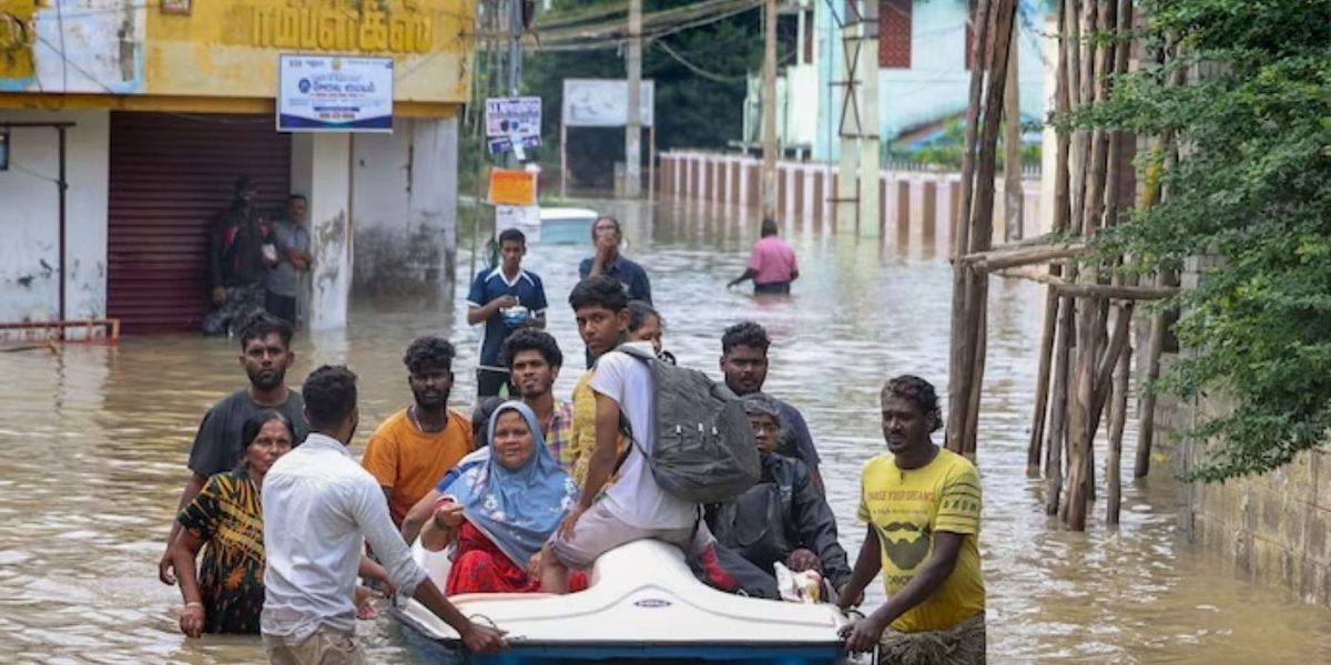 新华社报道,泰米尔纳德邦多个地区因史无前例的暴雨冲击,低洼地区被洪水淹没,并严重影响公路和铁路交通。