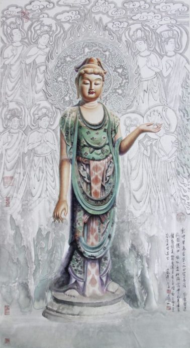 “作为艺术家,就有责任按照佛理、年代以及其他佛像的形象进行参考,在画面上尽可能恢复造像的原貌,不要让大家看到少头、缺脚的佛像,要让观者感到心情愉悦。”他的目光炯炯有神,声音铿锵有力。